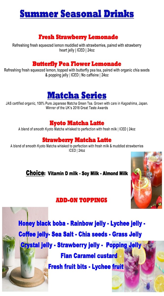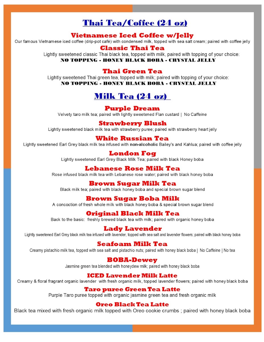 Bees & Tea offers a menu that impressively balances variety and creativity, making it a delight for both casual diners and adventurous eaters. Starters like Bistro Sampler, Steamed Bao Buns, and Crispy Crab Wontons set the tone with flavorful bites, while Thai Chili Wings and Curry Puffs add a playful, spice-forward twist. The sushi selection, featuring rolls like Tokyo Sun Roll, Spicy Lava Roll, Fire Cracker Roll, Captain Crunch Roll, and Salmon Lover, showcases both classic and inventive combinations, perfect for sharing or indulging solo. For those seeking something lighter yet hearty, the Poke Bowls - Beet "Poke" Bowl, Ahi Tuna Bowl, Spicy Ponzu Tuna Bowl, Sesame Salmon Bowl, and Spicy Salmon Bowl - bring fresh ingredients and bold flavors together in a satisfying way. Ramen enthusiasts will appreciate the depth in options like Shoyu Ramen, Spicy Miso Ramen, Tonkotsu Ramen, and the uniquely named "Buddha" Ramen, each offering comforting broth paired with tender noodles and vibrant toppings. Meanwhile, the Rice & Noodle Bowls - including Bistro Fried Rice, Malaysian Noodle, Drunken Noodle, Spicy Penang, and Pad Thai - provide versatile dishes that range from savory stir-fries to perfectly spiced noodles. Overall, Bees & Tea’s menu reflects a thoughtful blend of traditional and contemporary Asian flavors, with each dish named in a way that highlights its personality, making it easy for diners to navigate and pick favorites. The variety across appetizers, sushi, poke, ramen, and noodle dishes ensures there’s something for every palate, solidifying Bees & Tea as a standout destination for flavorful, well-curated meals in Arlington.